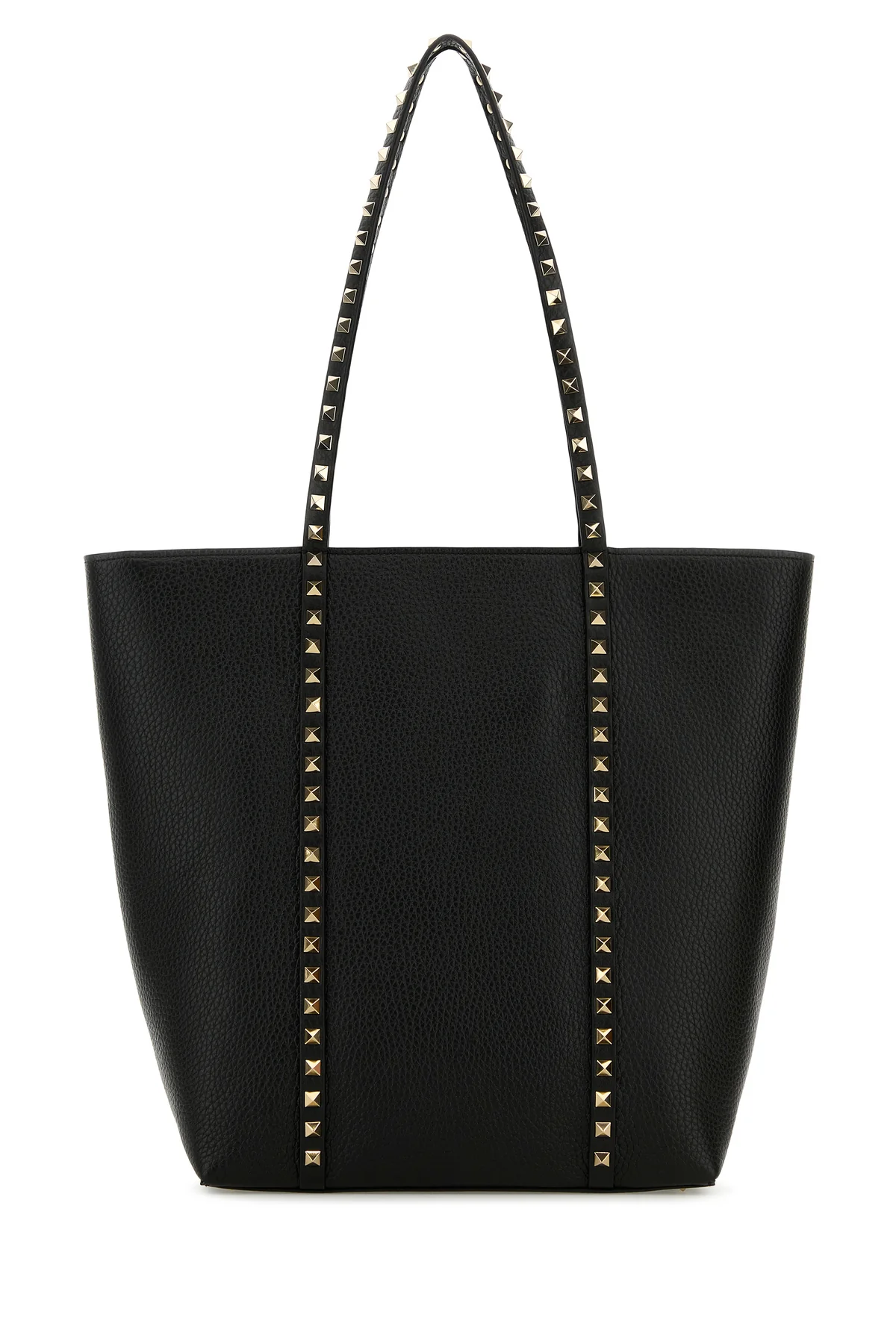 Borsa shopping realizzata in pelle di vitello martellata arricchita da borchie sulla parte frontale, sui manici e sul retro.