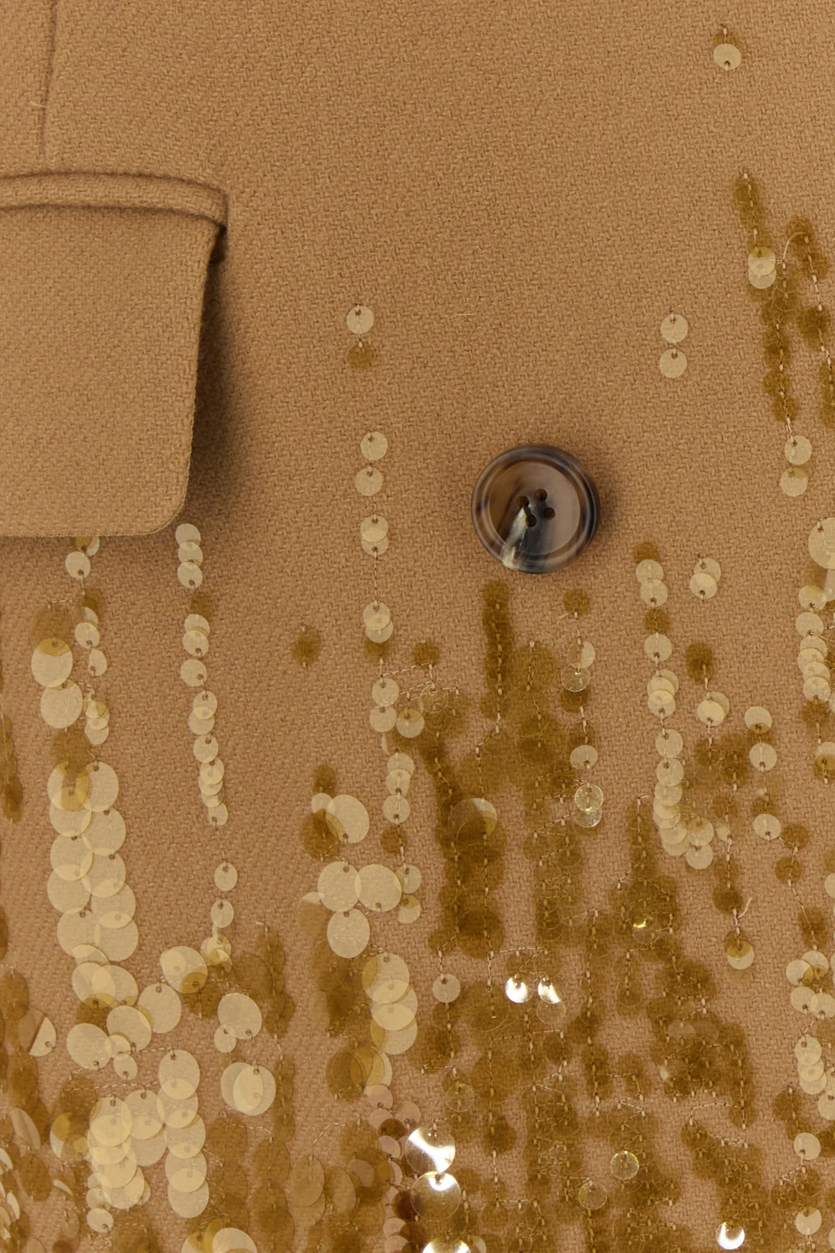 Cappotto realizzato in pura lana arricchito da paillettes sul fondo.