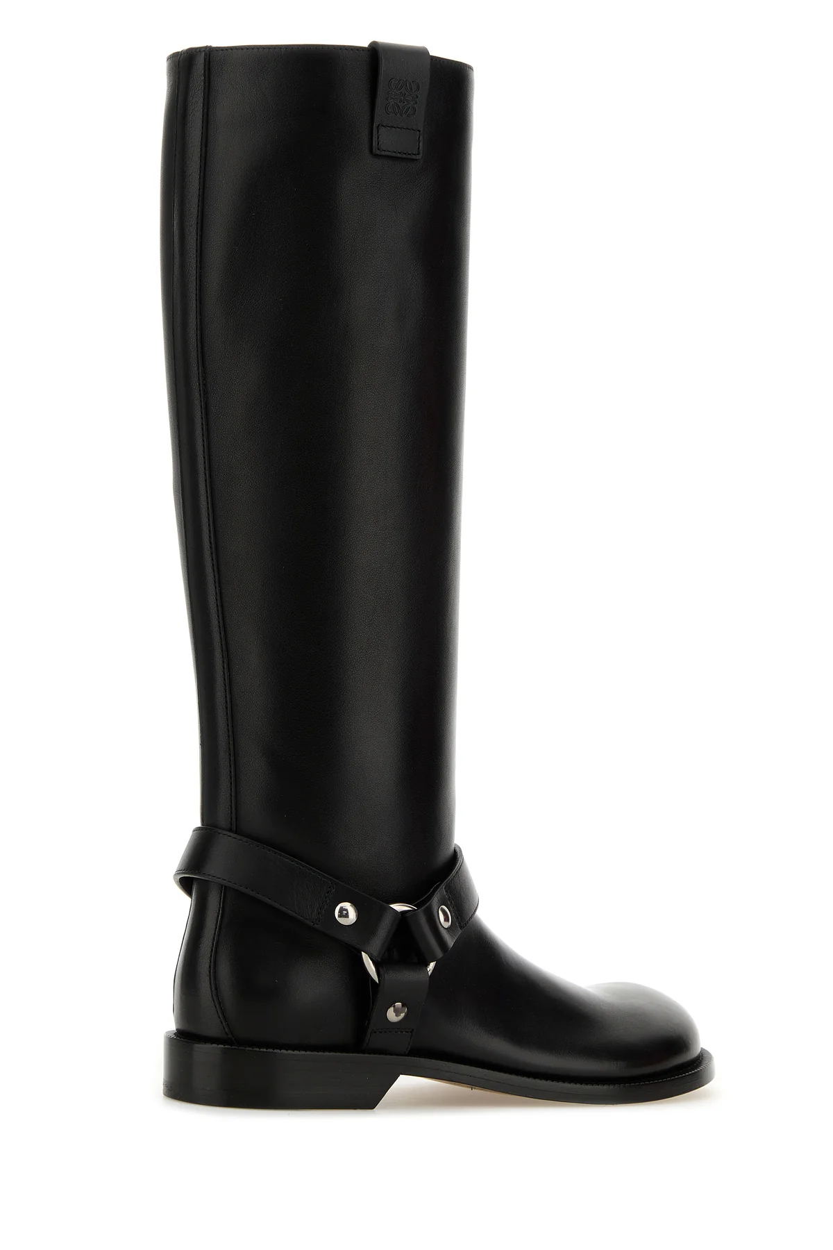 Stivali realizzati in pelle di vitello liscia caratterizzati da logo impresso sul lato arricchiti da dettagli in pelle tonale e metallo sui lati.